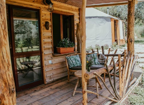 CHARMING Nature house IN PEACEFUL NATURE Hey everyone! We are happy to host you in our cozy yurt. The place has all the facilities you will need to have a comfortable and relaxed stay in the nature of central Portugal. Come and experience the country side lifestyle surrounded by olive farms and vineyards. Our yurt is a 20m2 bedroom where you can enjoy the stars at night through the top dome window. Entering the hall way you will find a specious and equipped kitchen. The wooden terrace is looking on a green garden full of ancient olive trees. Your private bathroom is a few steps away and has an Eco-friendly toilet as well as a spoiling hot shower. For those who need to stay connected, there is a good Wifi network available.