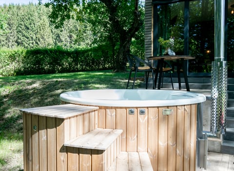 On the terrace, you'll find a Nordic bath that you'll heat yourself with wood, deckchairs, a table and chairs to brighten up your stay. Behind the mirror, beyond the large sliding door, you'll find a delicious double bed, the qualities of which you'll be the judge of. And once you've turned off the flat-screen TV with Netflix and settled into the spacious Finnish sauna, you'll enjoy a restful view over the magnificent garden, admiring the colors of each of the seasons as they stretch across the park. If there's no kitchen, we've provided all the comforts for an unforgettable stay. Fridge, coffee machine, kettle for delicious herbal teas, and a bathroom where, under the Italian shower, you'll have RITUALS beauty products at your fingertips. For breakfast, you reserve your table and simply follow the reindeer to the Moulin, enter and settle in.